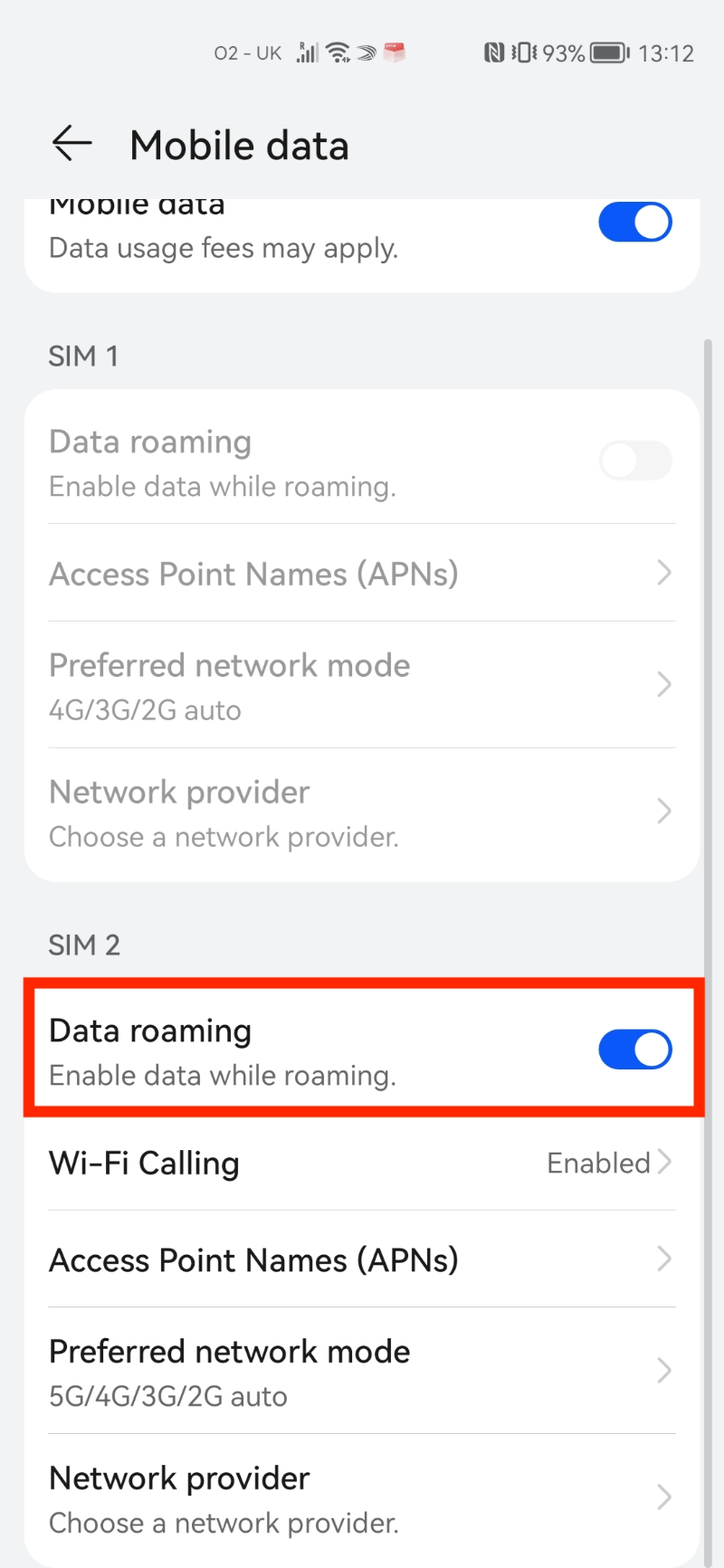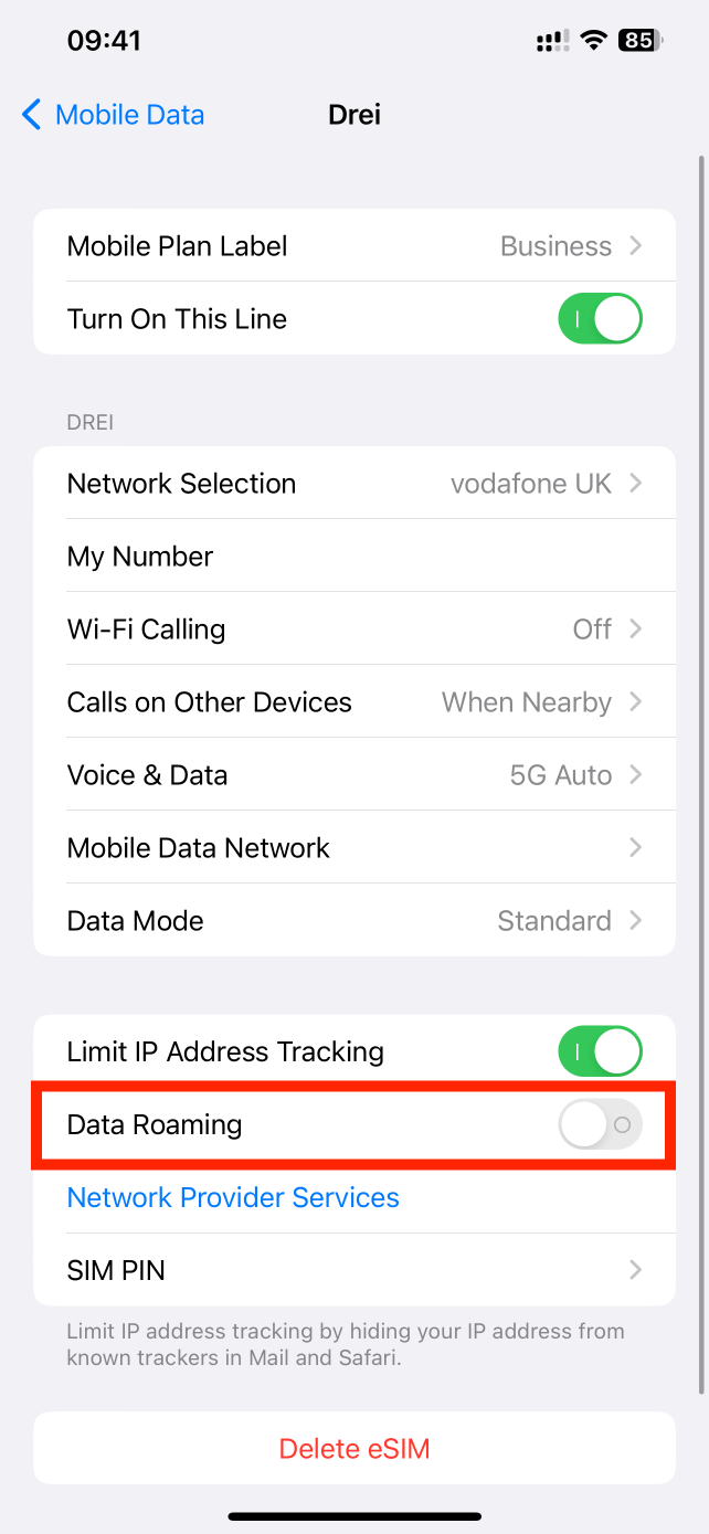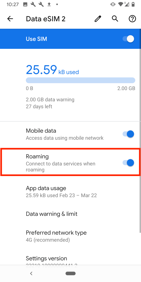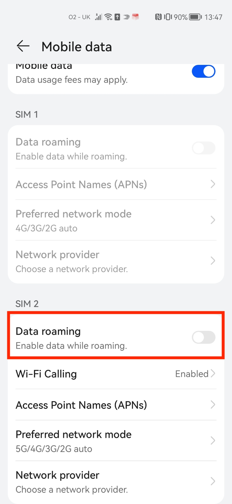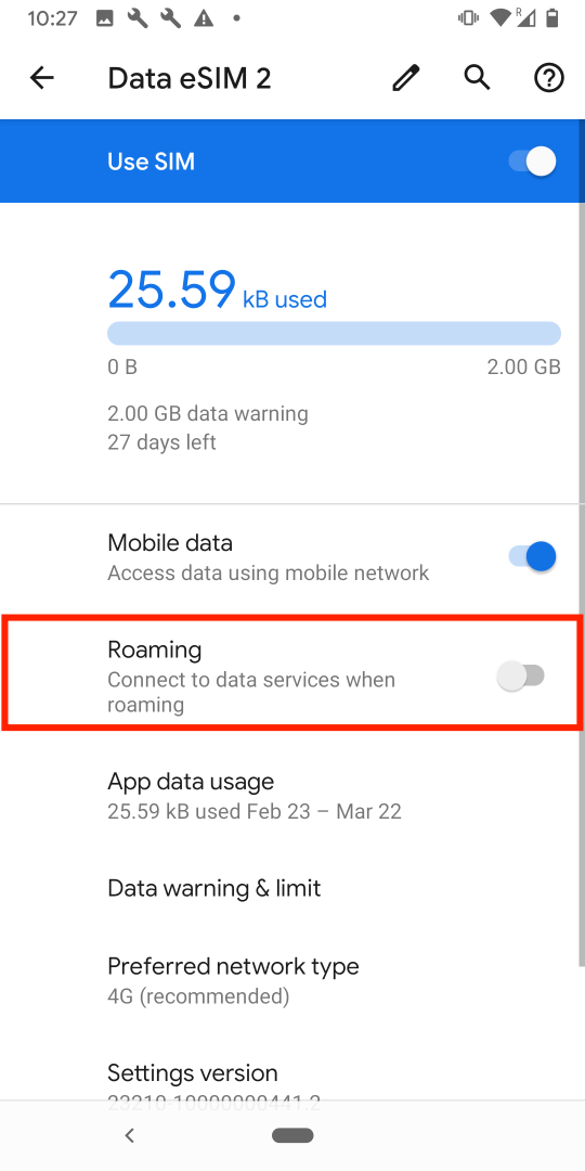 - Your data roaming package needs to be turned off on your primary SIM to ensure that your eSIM is used for data only.