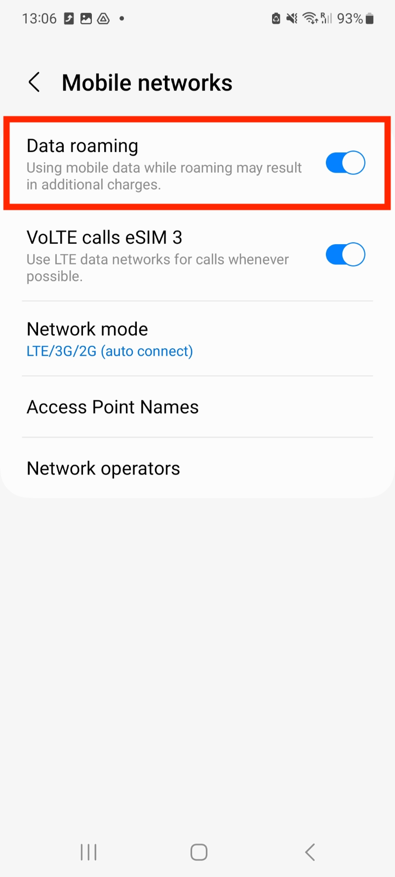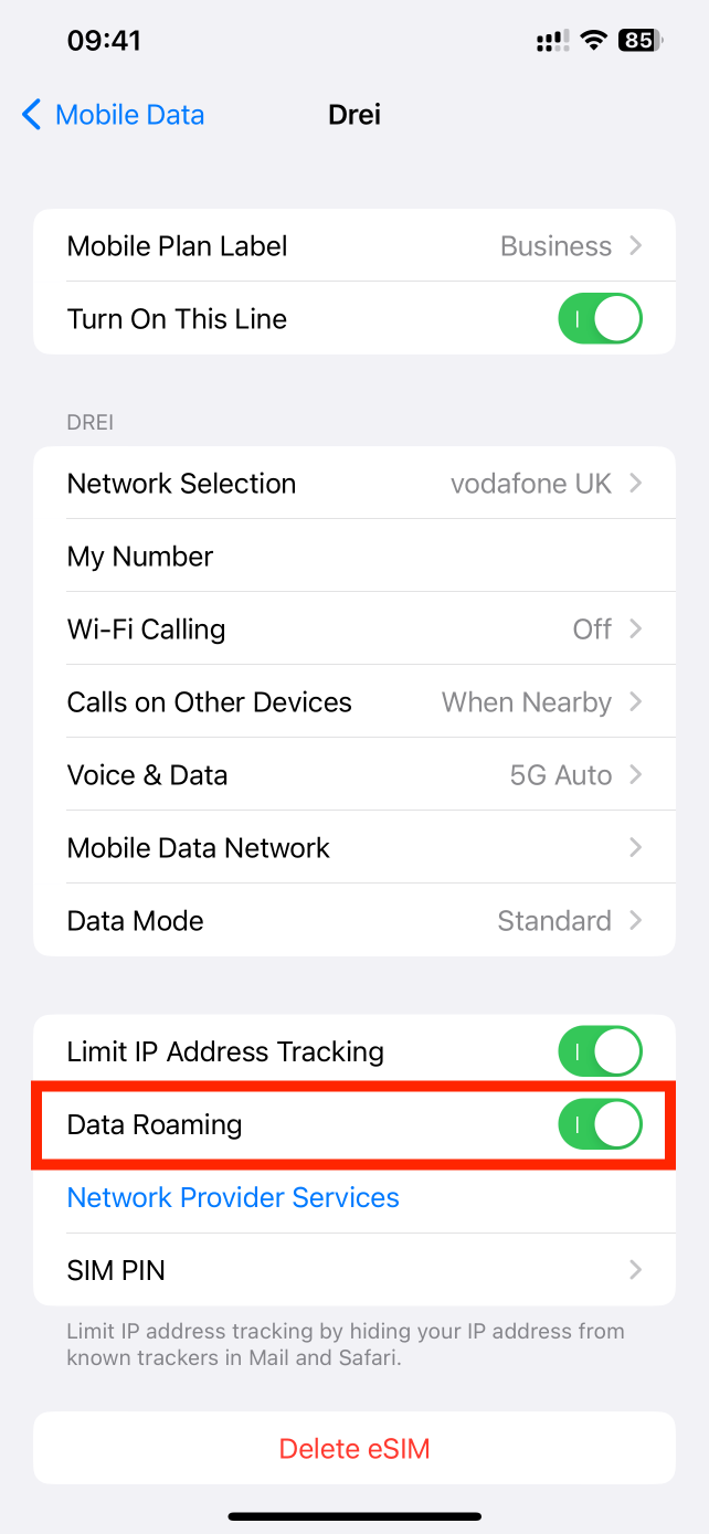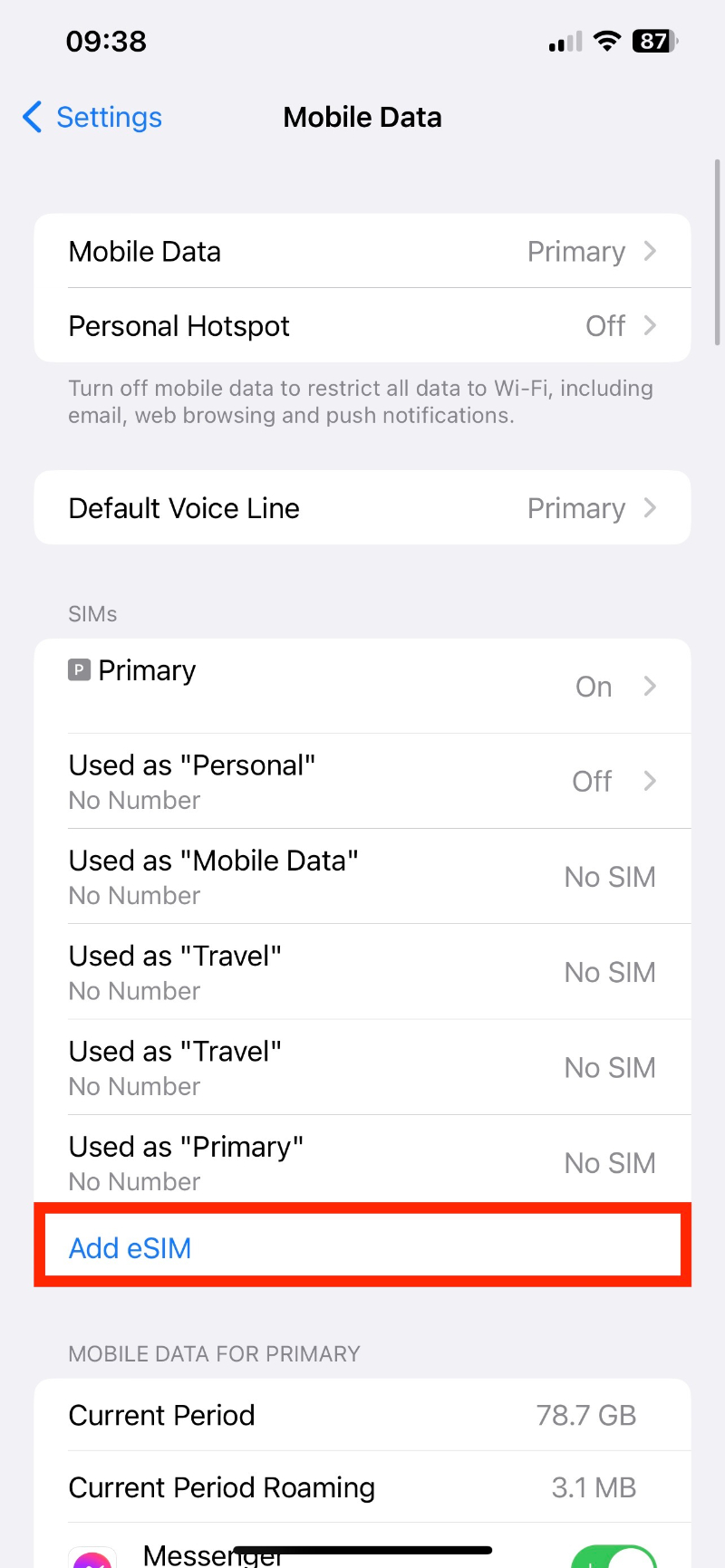 - Your data roaming package needs to be turned off on your primary SIM to ensure that your eSIM is used for data only.