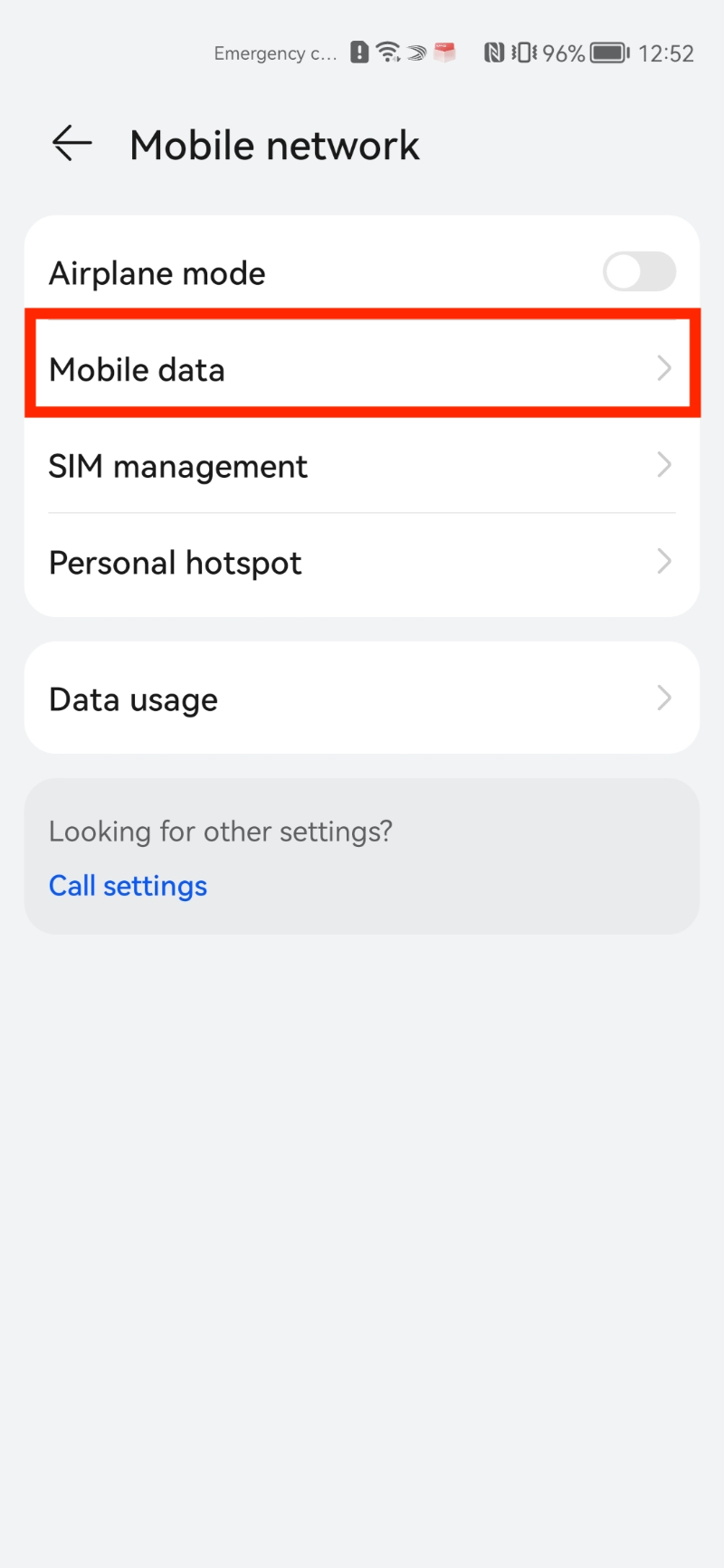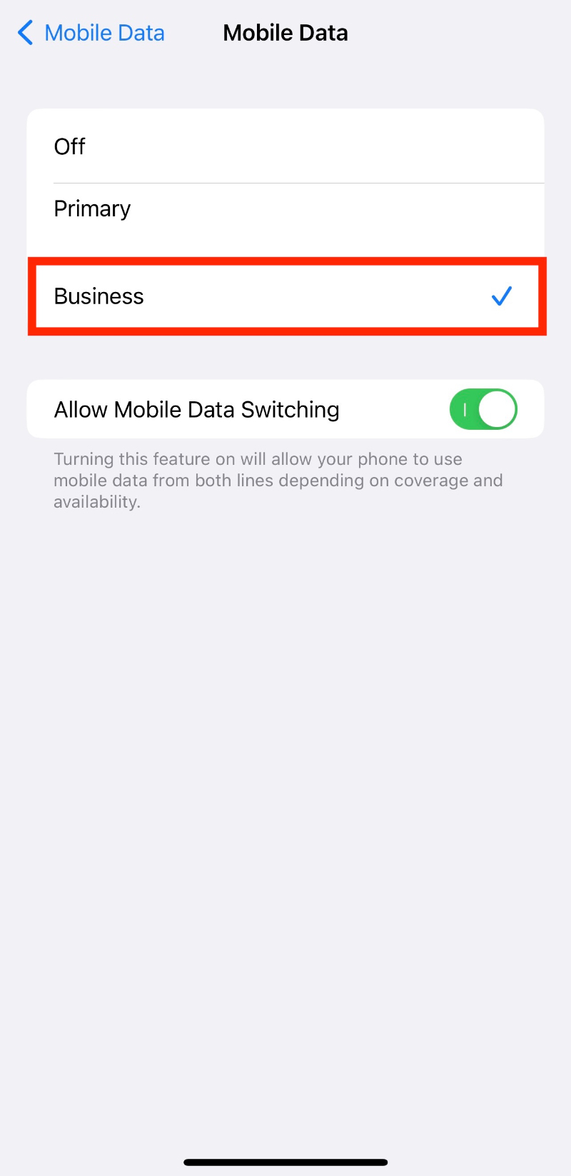 - Find the section labelled ‘Mobile/Cellular Data’.