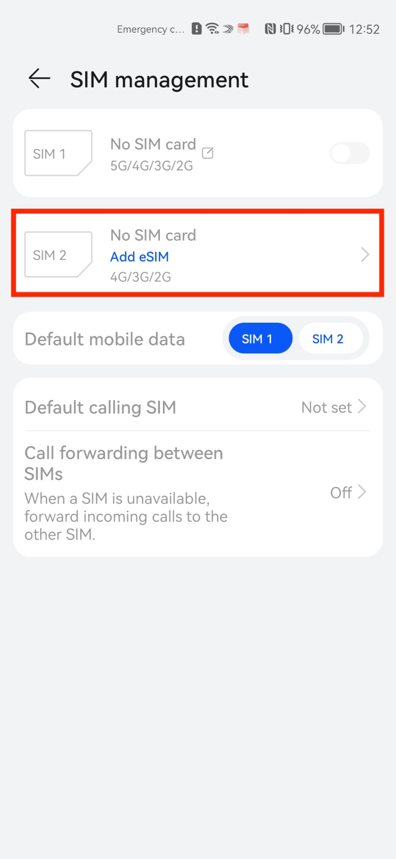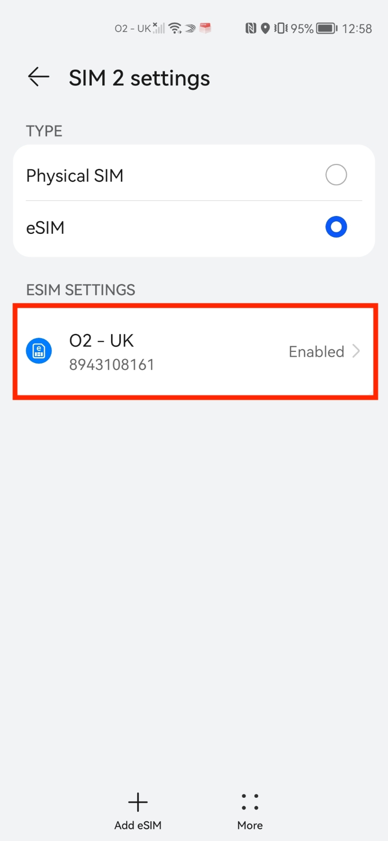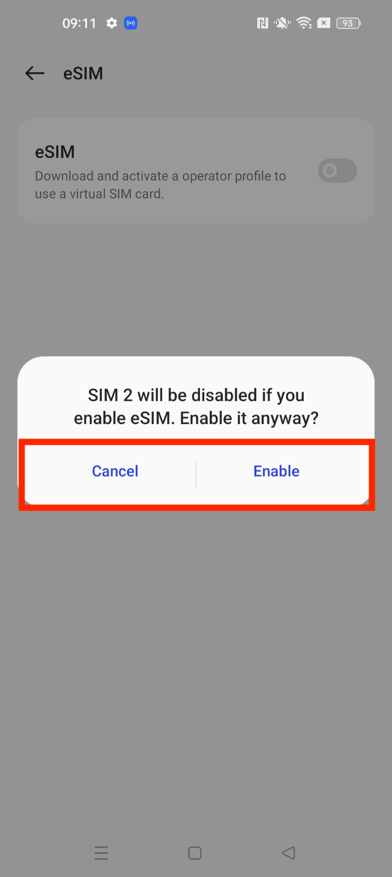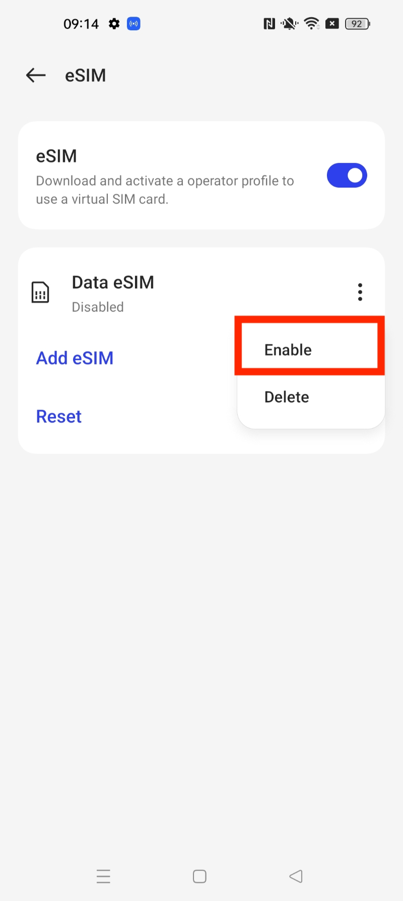 - In this section, ensure that the correct eSIM is enabled. If the eSIM is not turned on, turn it on n