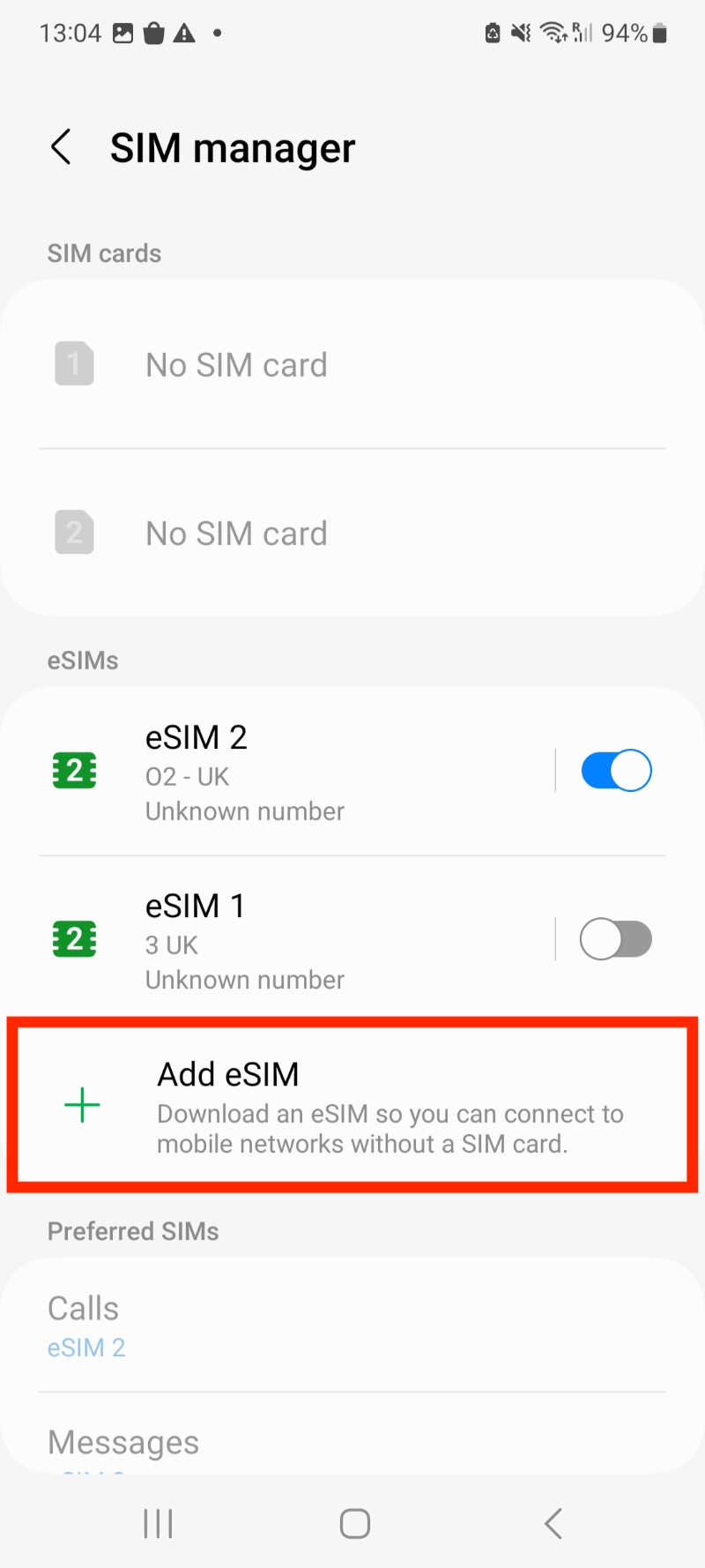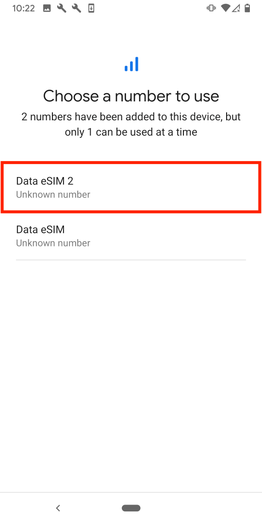 - If your eSIM is installed in the phone, it will be displayed in the menu.